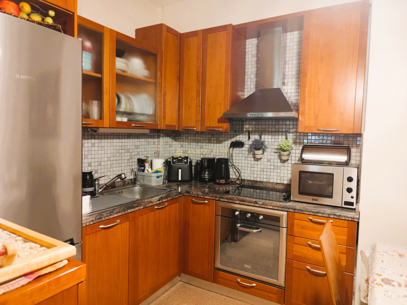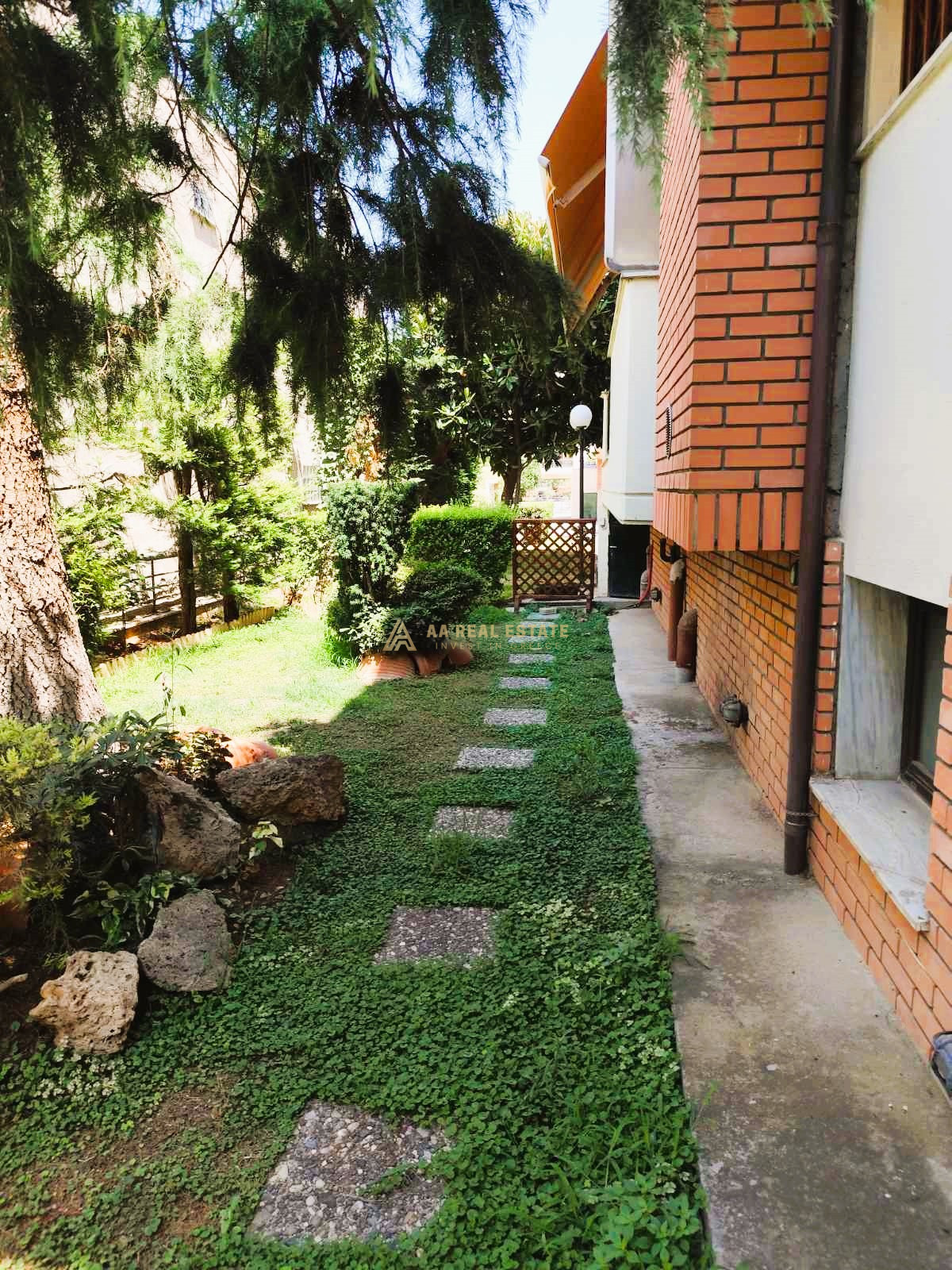 PYLAIA – UNIQUE HOUSE WITH A WONDERFUL GARDEN – FOR SALE corner, bright, furnished with excellent taste and quality first floor apartment, in a well-kept, spotlessly clean and quiet complex near the Nea Elvetias metro station, 70 sq m that stands out for its quality of construction, its privileged location and its comfortable, bright spaces. It consists of a large, square living room with dining area and fireplace, functional fully equipped kitchen, two bedrooms with built-in wardrobes, bathroom and large comfortable balcony overlooking the wonderful garden where it has exclusive use, and there is a gazebo with BBQ dining area and living room with insulated tiled roof, closed parking space in the basement of the building with access by automatic door and elevator, basement storage room with ventilation window and tiled floor and shelves. The heating is individual through a new heat pump, ensuring autonomy and economy. The quality features of the property include the wooden double-glazed windows with screens, the marble floors in the living room and oak floors in the bedrooms, ceramic tiles on the balconies, security door, automatic security shutters, four new air conditioners, energy fireplace, alarm, cameras, large wardrobes. The property is excellently maintained, ready to move in and is located within walking distance of the local market and public transport. It is an ideal choice for owner-occupation but also for exploitation for people looking for a quality and functional home with easy access to the center of Thessaloniki, the regional road, Halkidiki and the city airport. It is worth visiting and enjoying the view of the lush garden, an oasis in the middle of the city, where all that is needed is the new owner’s luggage.