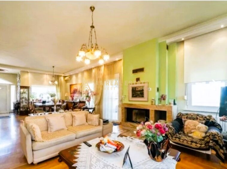 DRAMA – FOR SALE excellent, bright, luxurious detached house of 345 sq m, on a plot of 2,500 sq m with unlimited views. It consists of 5 bedrooms, one of which is a master with its own dressing room, fireplace and bathroom, living room, 2 kitchens, 3 bathrooms, storage room, closed parking space and large perimeter balconies overlooking the open space, Quality construction of 1990, with excellent materials, synthetic double-glazed windows, screens, wooden floors, fireplaces, air conditioning, solar water heater, satellite antenna, internal staircase, security door. Heating with a gas burner. In the wonderful garden of the residence, we find a built structure for barbecues and a living room, 21 olive trees, many fruit trees and parking spaces. It is located just outside the center of Drama, and is only 35 kilometers from Kavala and its beaches, as well as 170 kilometers from Thessaloniki airport. Nearby are the cave of Aggitis, the forests of Fraktos and Elatia, where one can enjoy hiking and mountaineering routes and rafting on the Nestos River. It is an excellent choice for a residence in a quiet and green environment, ideal for families.
