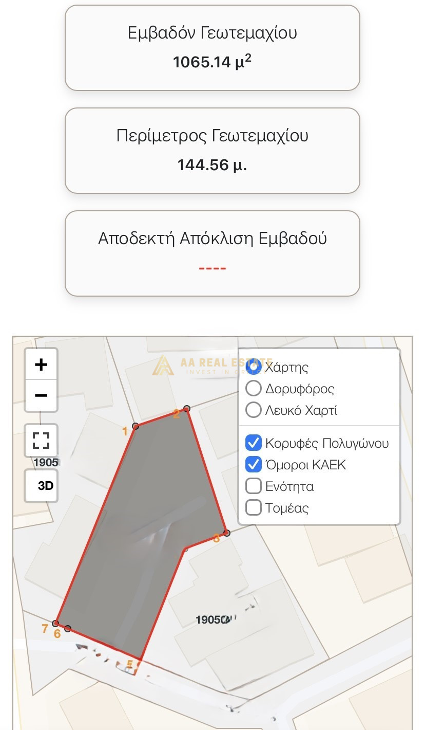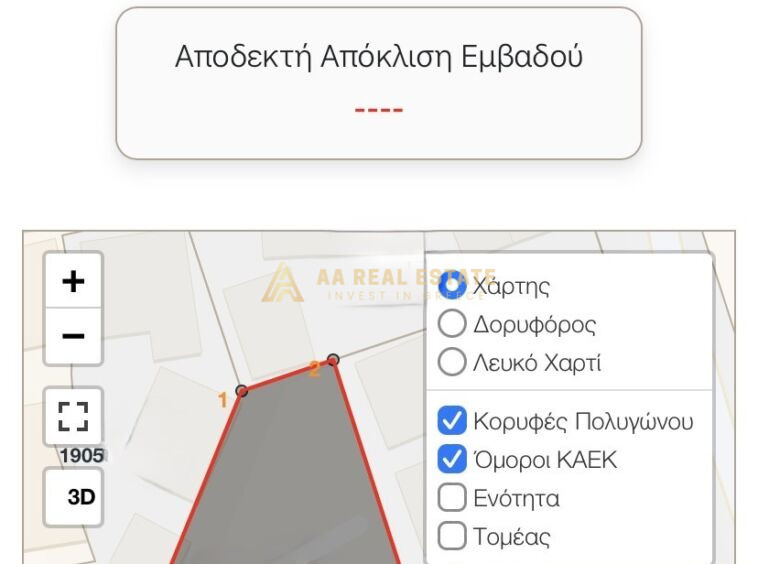 KARDIA center. An excellent plot of 1065 m2 for sale with very good dimensions and a building factor of 0.40. It is located in a central part of the settlement with a guaranteed view and openness. Slightly sloping plot 100 meters from the center of Kardia, Suitable for the construction of detached houses, an ideal investment option.