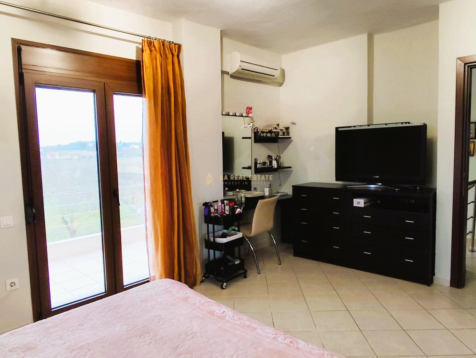 -πρώτος όροφος αποτελείται από το κυρίως μπάνιο (με μπανιέρα) και από τρία άνετα υπνοδωμάτια εκ των οποίων το ένα είναι “master” με μπάνιο αποκλειστικής χρήσης (με ντουζιέρα), άνετες ντουλάπες και μεγάλες βεράντες.