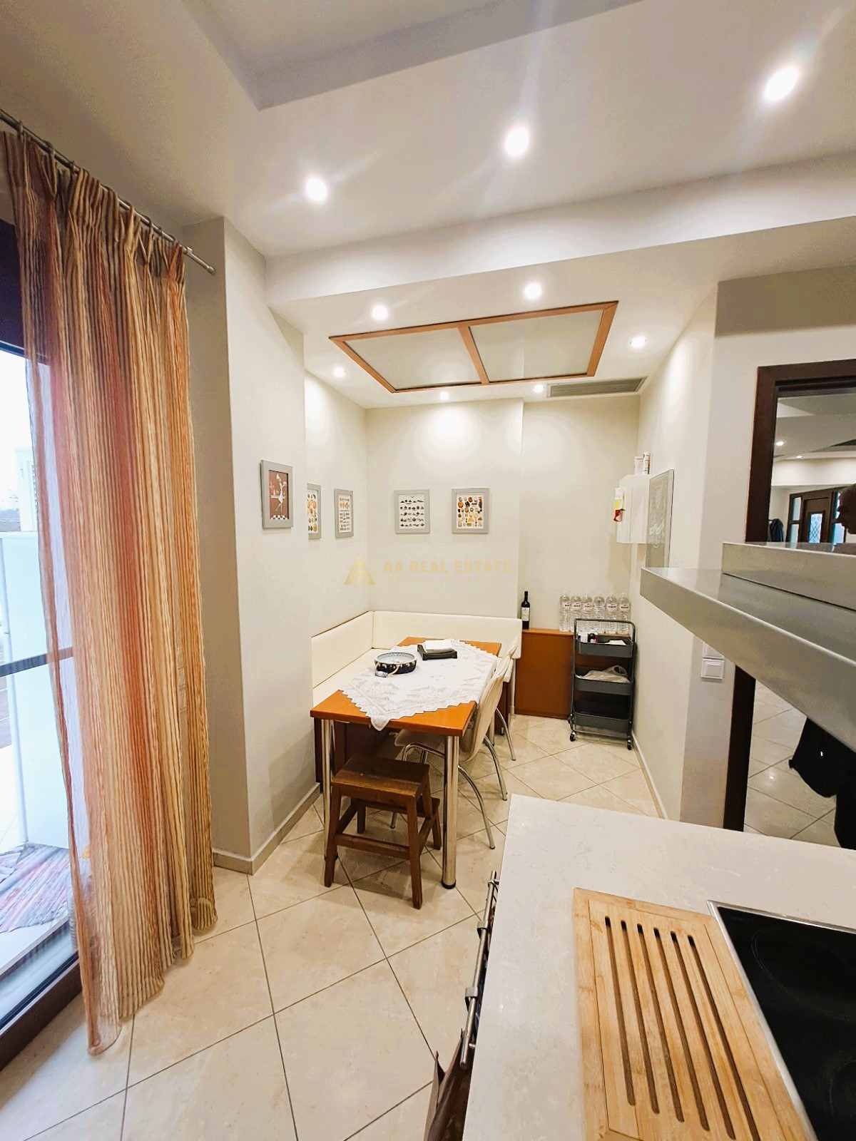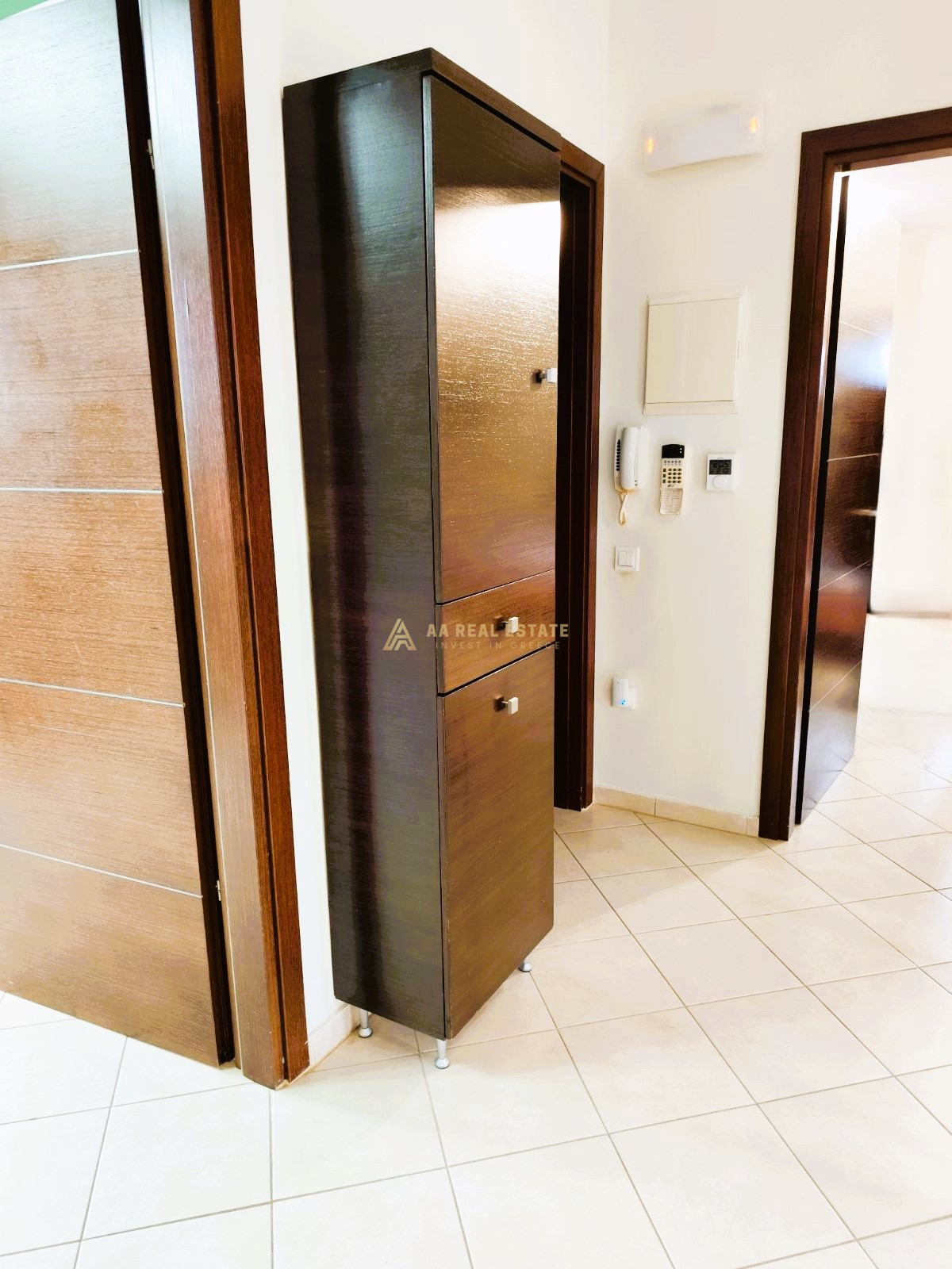 Διαθέτει πατώματα με ποιοτικά πλακάκια, εξαιρετικά κουφώματα αλουμινίου διπλής υάλωσης, σίτες, και πλαίσια από αλουμίνιο. Κλιματιστικό σύστημα με αεραγωγούς και σύστημα συναγερμού. Η θέρμανση είναι ενδοδαπέδια και πραγματοποιείται με λέβητα αερίου, ενώ η θερμοκρασία σε κάθε επίπεδο της οικίας ρυθμίζεται με ξεχωριστό θερμοστάτη. Σύγχρονη εντοιχισμένη κουζίνα και τέλειες ηλεκτρολογικές εγκαταστάσεις με παροχές σε όλους τους χώρους του σπιτιού. Κεραμοσκεπή, πόρτα αφαλείας.