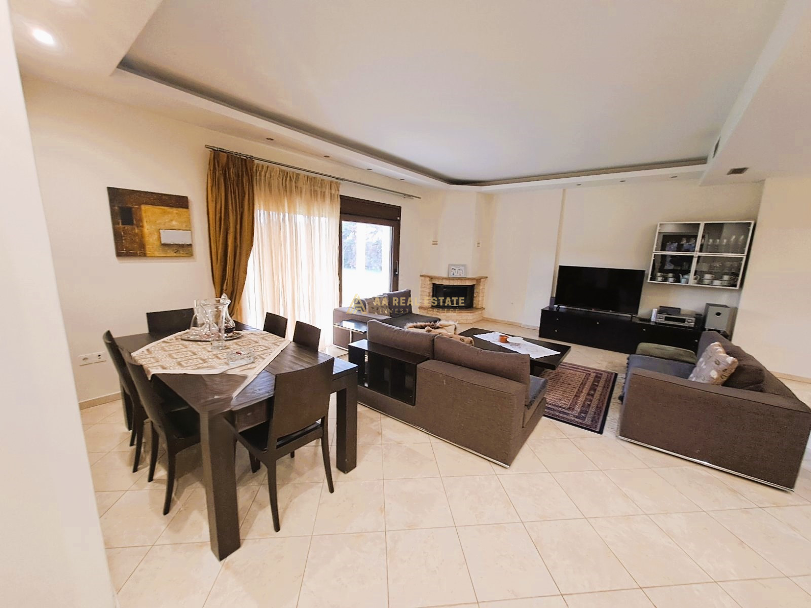 -Ισόγειο με χώρο υποδοχής, άνετη σαλοτραπεζαρία με ενεργειακό τζάκι, ξεχωριστή μεγάλη κουζίνα με χώρο τραπεζιού, ένα υπνοδωμάτιο, WC και μεγάλες βεράντες.