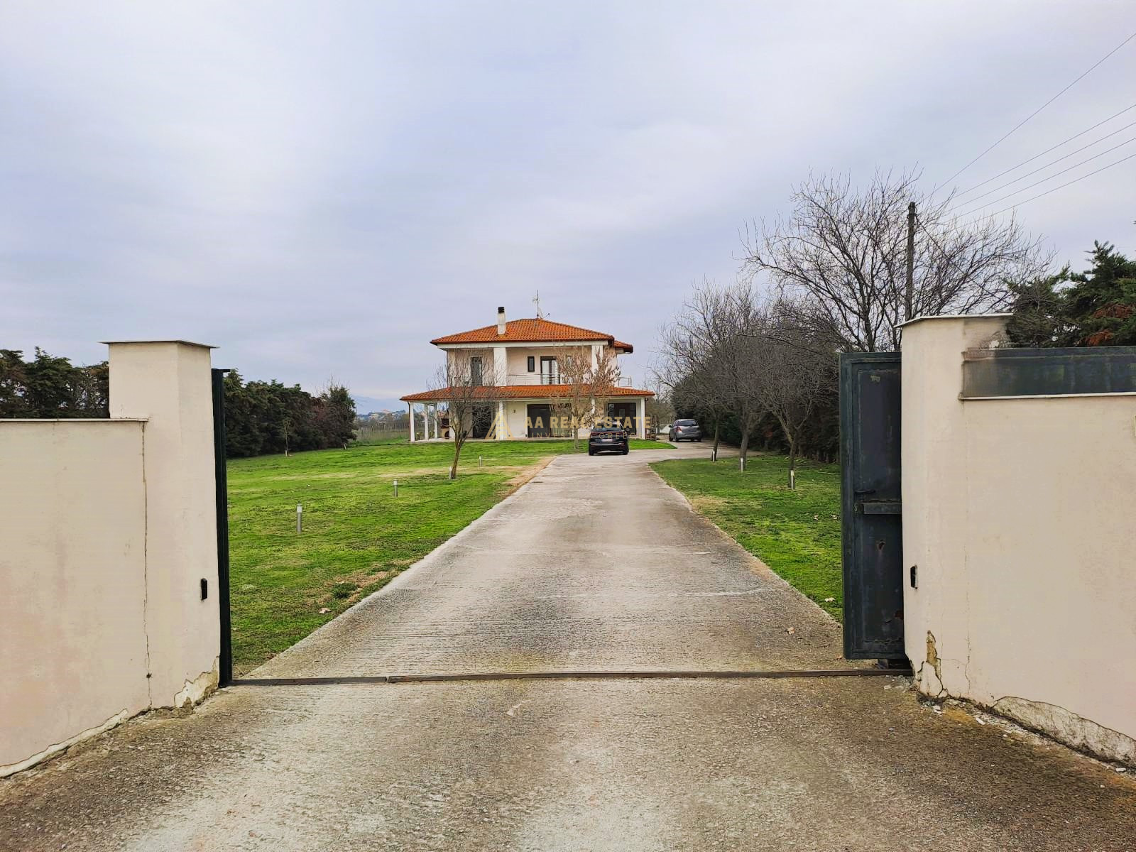 Η είσοδος στο οικόπεδο πραγματοποιείται με τηλεχειριστήριο ελέγχου ηλεκτρικής συρόμενης πόρτας.