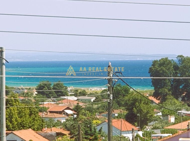 στον επάνω όροφο υπάρχει διαμέρισμα 90 τμ, με δύο υπνοδωμάτια, μεγάλο καθιστικό με χτιστό τζάκι επενδεδυμένο με πέτρα και ξύλο, μεγάλη κουζίνα ντυμένη με ξύλο, μεγάλο μπάνιο και τεράστια μπαλκόνια με ανεμπόδιστη θέα στη θάλασσα αλλά και τις παραλίες Βεργιάς και Γεωπονικά.