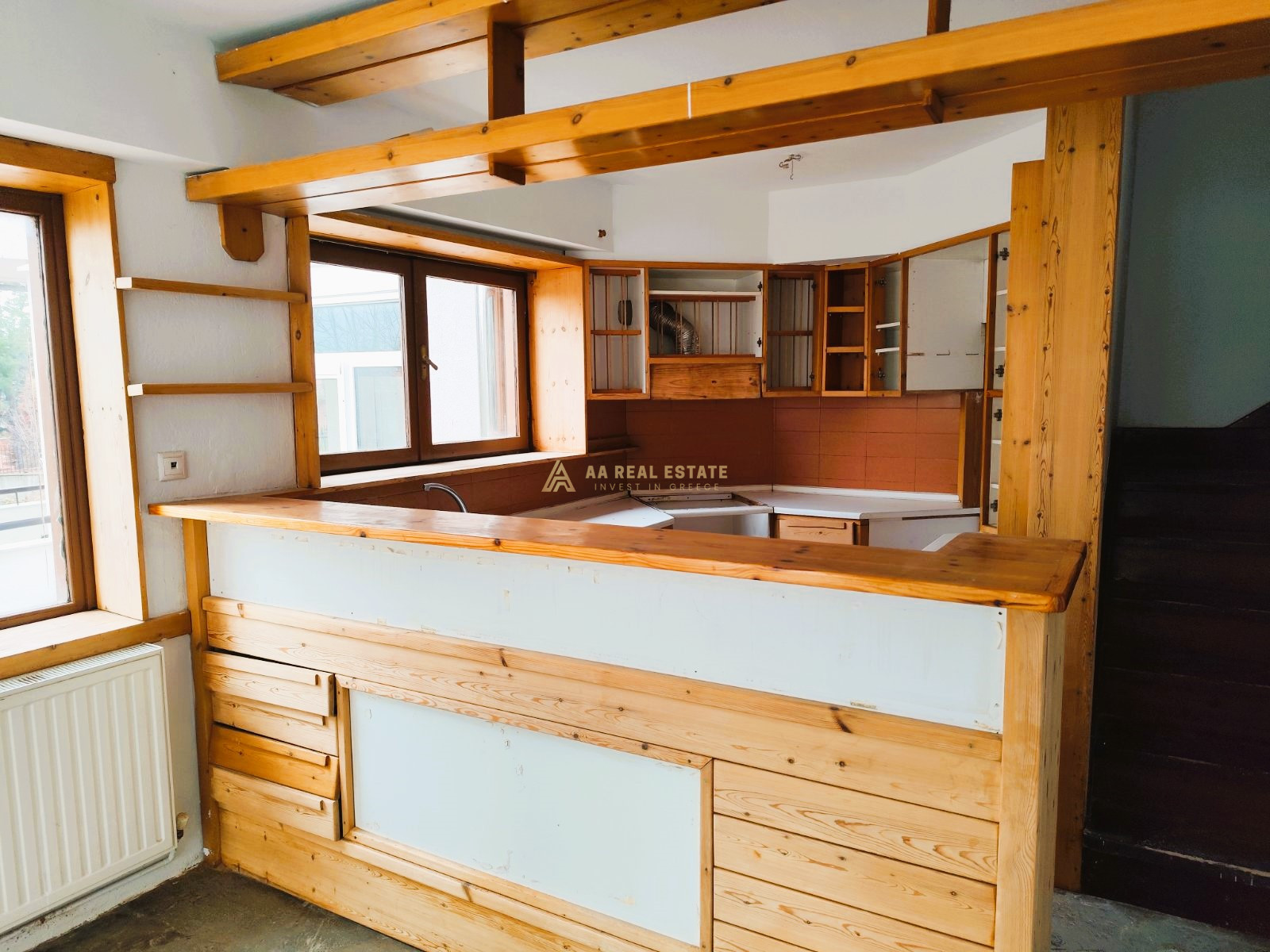 Είναι κατασκευασμένη το 1990 με ενεργειακή κλάση Η και διαθέτει θέρμανση ατομική – πετρέλαιο, μεγάλα ανοίγματα με κουφώματα αλουμινίου συρόμενα, πατώματα από πέτρα και ξύλο, πάρκινγκ, αποθήκη, κήπο, τζάκι, ανοιχτωσιά, εσωτερική σκάλα, μπαλκόνια 30 τ.μ. – Το ακίνητο έχει την παρακάτω διαρρύθμιση χώρων: